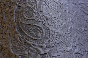 Kain emboss memiliki ciri khas yang cukup unik dengan ukiran motif timbul pada permukaannya.