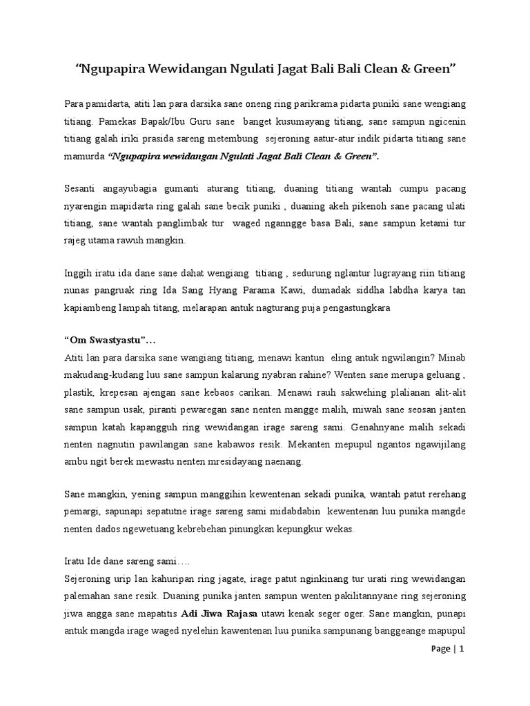 Pidato Bahasa Bali Singkat / Pdf Tingkat Tingkatan Bicara Bahasa Bali Dampak Anggah Ungguh Kruna : Bahasa suku osing adalah bahasa osing, yang merupakan turunan dari bahasa jawa kuno.