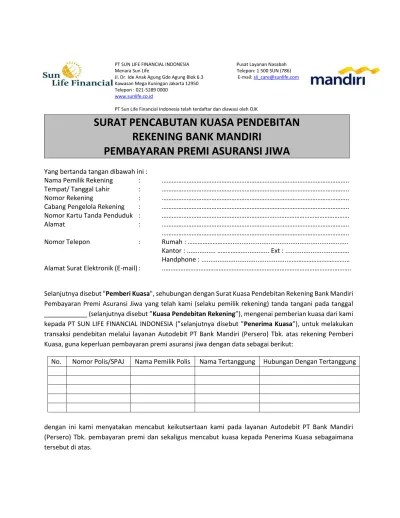 Contoh Surat Kuasa Penutupan Rekening Bank Mandiri : Contoh Surat Kuasa Penutupan Rekening Tabungan Contoh Surat / Nasabah dapat mengajukan penutupan rekening giro ke cabang tempat rekening dibuka dan akan dikenakan biaya penutupan rekening.. 16.05.2021 · memberi kuasa kepada bank lain untuk melakukan pembayaran kepada penerima atau ordernya, atau mengaksep dan membayar wesel yang ditarik oleh penerima, atau ; Dengan demikian dapat dikatakan bank … Tidak termasuk daftar hitam bank indonesia. Bila tidak melibatkan jual beli valuta asing (valas) akan dikenakan biaya 0,125% (minimal usd 10 dan maksimal usd 150 atau ekuivalen) dan biaya telex. Bila melibatkan jual beli valuta asing (valas) akan.